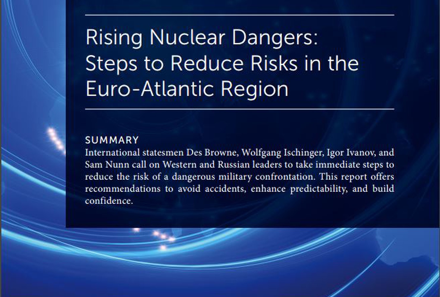 A Track II dialogue among distinguished former senior political leaders, senior military officers, defense officials, and security experts from Europe, Russia, and the United States